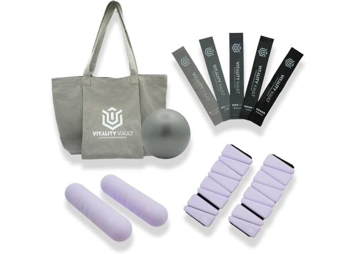 Handgewichte (2) – Der rutschfeste Griff ist komfortabel und gewährleistet eine einfache Handhabung bei kontrollierten Bewegungen, sodass Sie sich auf Ihre Form und Ihren Bewegungsablauf konzentrieren können. Die Vitality Vault Handgewichte sind in 1 kg pro Gewicht erhältlich und bieten einen ausgewogenen Widerstand, der ideal ist, um Rumpfkraft, Straffung und Flexibilität zu verbessern.